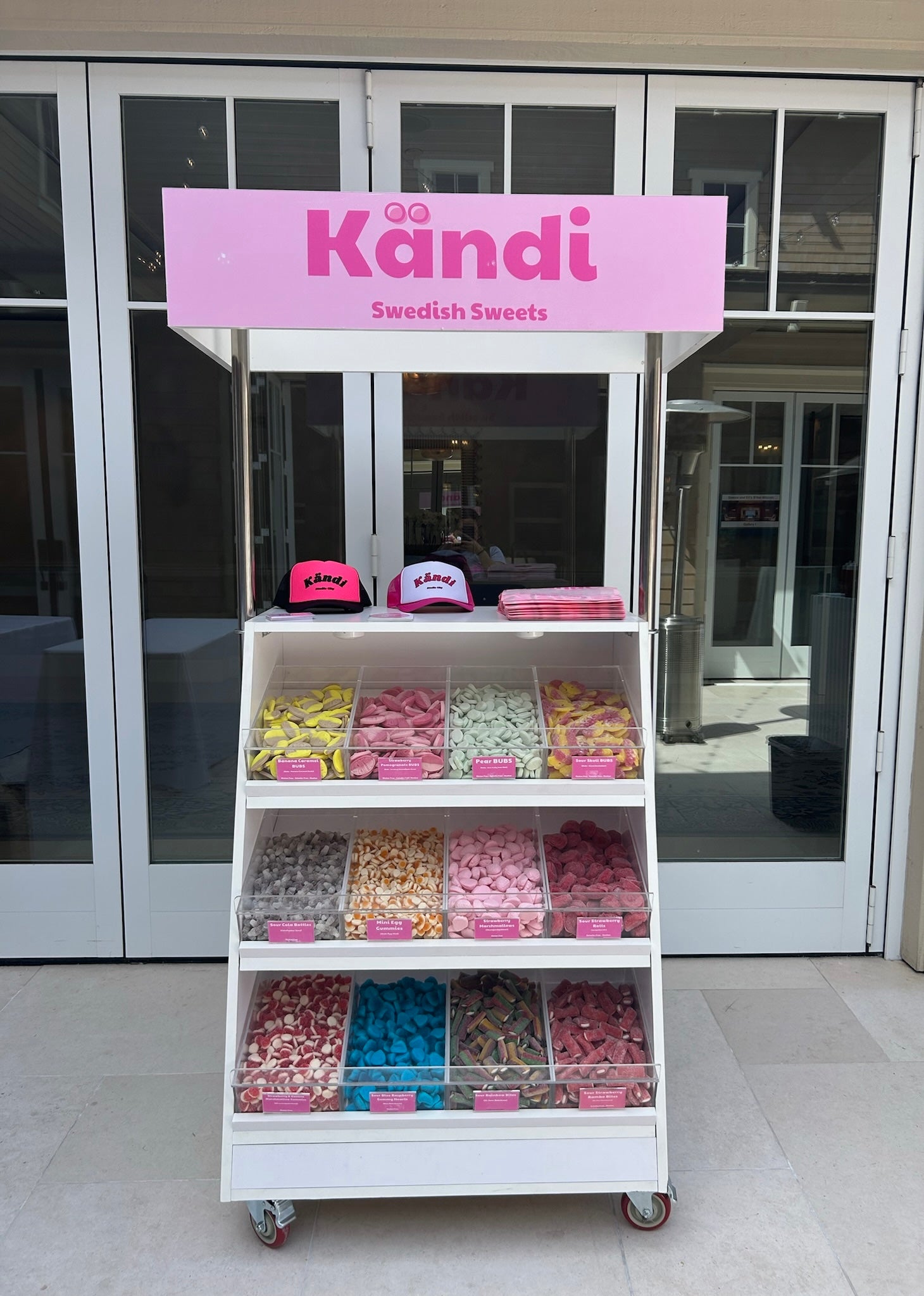 Our Kändi Cart is perfect for birthdays, weddings, office parties, pop-ups, brand activations, or any celebration. We bring our signature self-serve candy cart filled with 12 bins of premium Swedish sweets right to you — anywhere in Los Angeles.